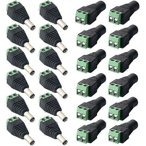 24 pcs Professional DC Connector Plugs, Thin 12V DC Power Cable Connector Adapter, 12 Pair 2-Pin Male Plug & Female Jack Kit, For CCTV Camera LED Stri