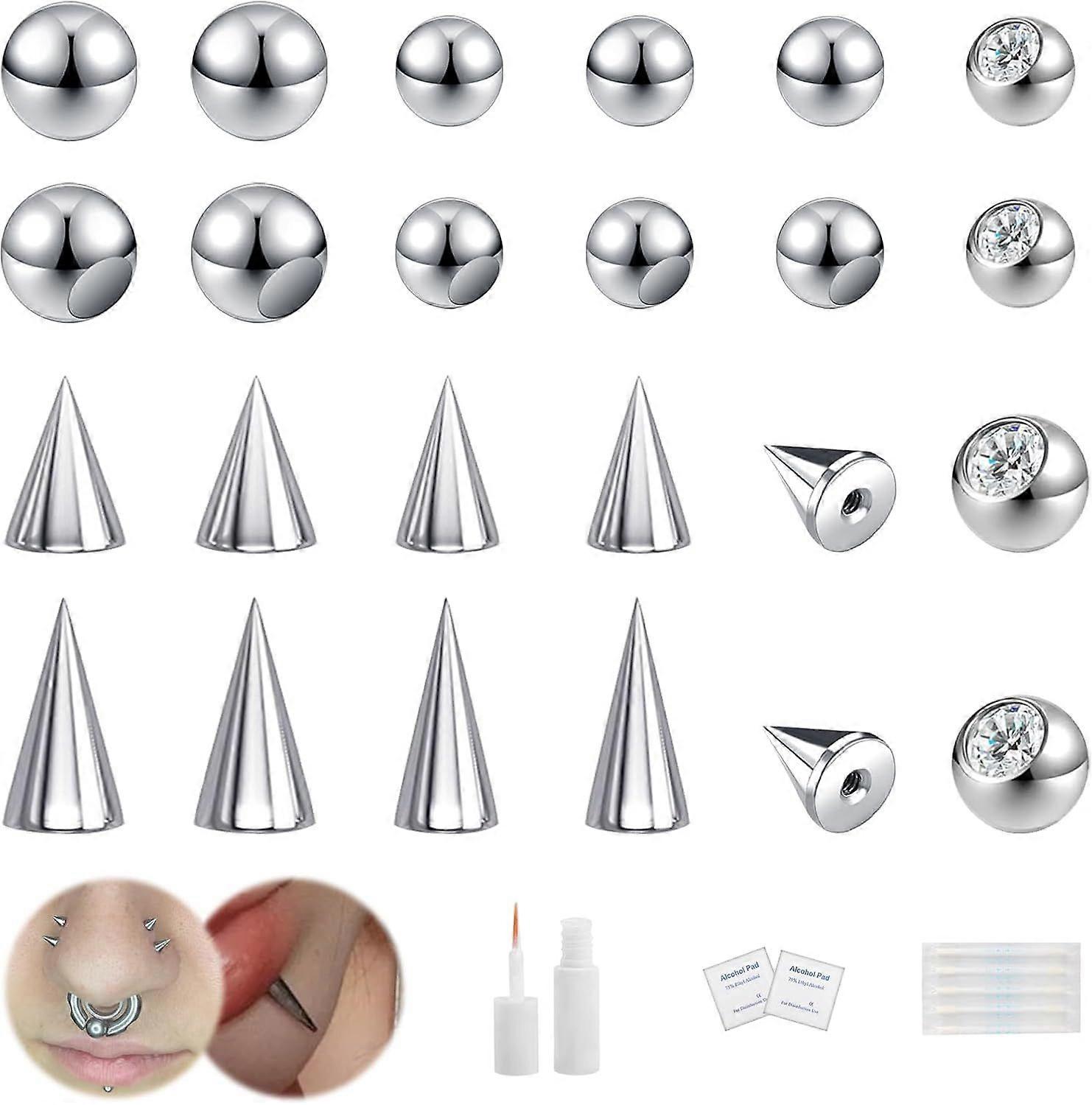 24Pcs Fake Nose Lip Labret Studs Eyebrow Rings, 3mm 4mm Replacement Balls Long