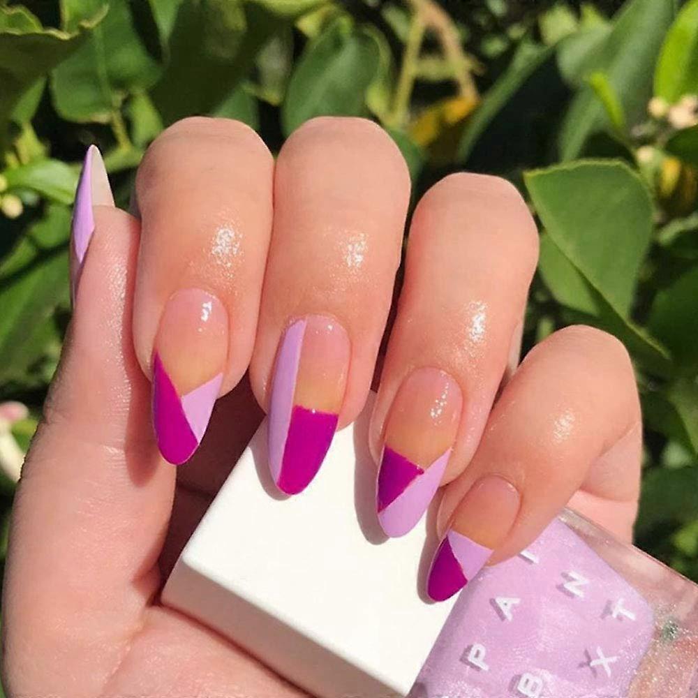 24Pcs Full Fake Nails Short-French Press on Nails Oval Acrylic Fake Nails Splicing Graffiti Stick on Nails With Glue Sticker Beautiful Nails for Women