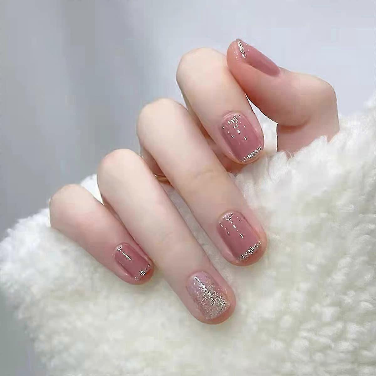 24 Pcs French Tip Press on Nails Short,Fake Nails Glossy Square Acrylic False