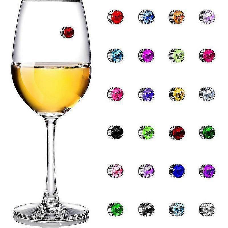24 Pieces Wine Glass Charms Crystal Magnetic Drink Markers For Wine Glass Champagne Flutes Cocktails Martinis, Colorful