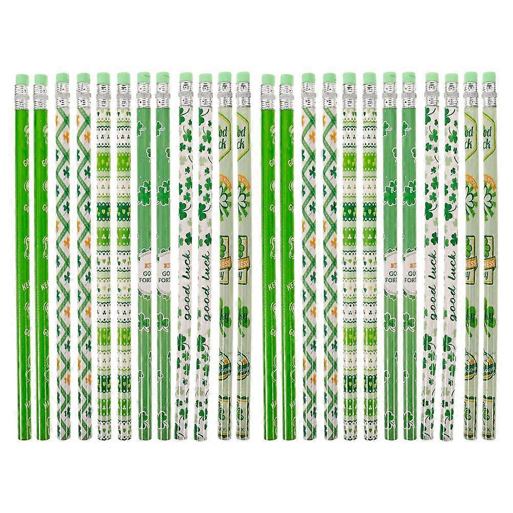 24Pcs Adorable Pencils Writing Pencils Wooden Sketch Pencil St. Patrick's Day Pattern Pencils