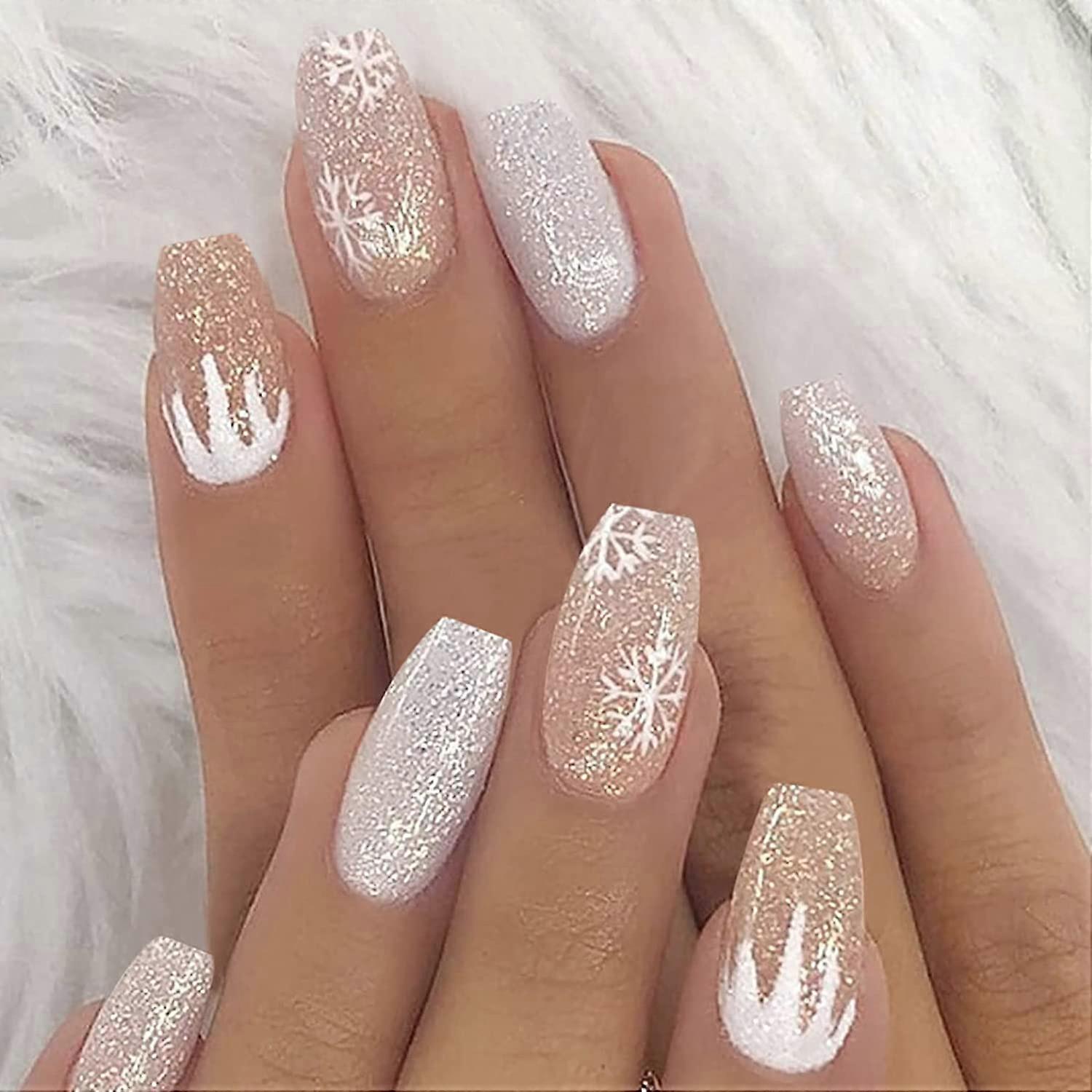 24 Pcs Coffin Press on Nails Short, Fake Nails Glue on Nails, False Nails with Glue, Acrylic Nails for Women and Girls (Set 5)