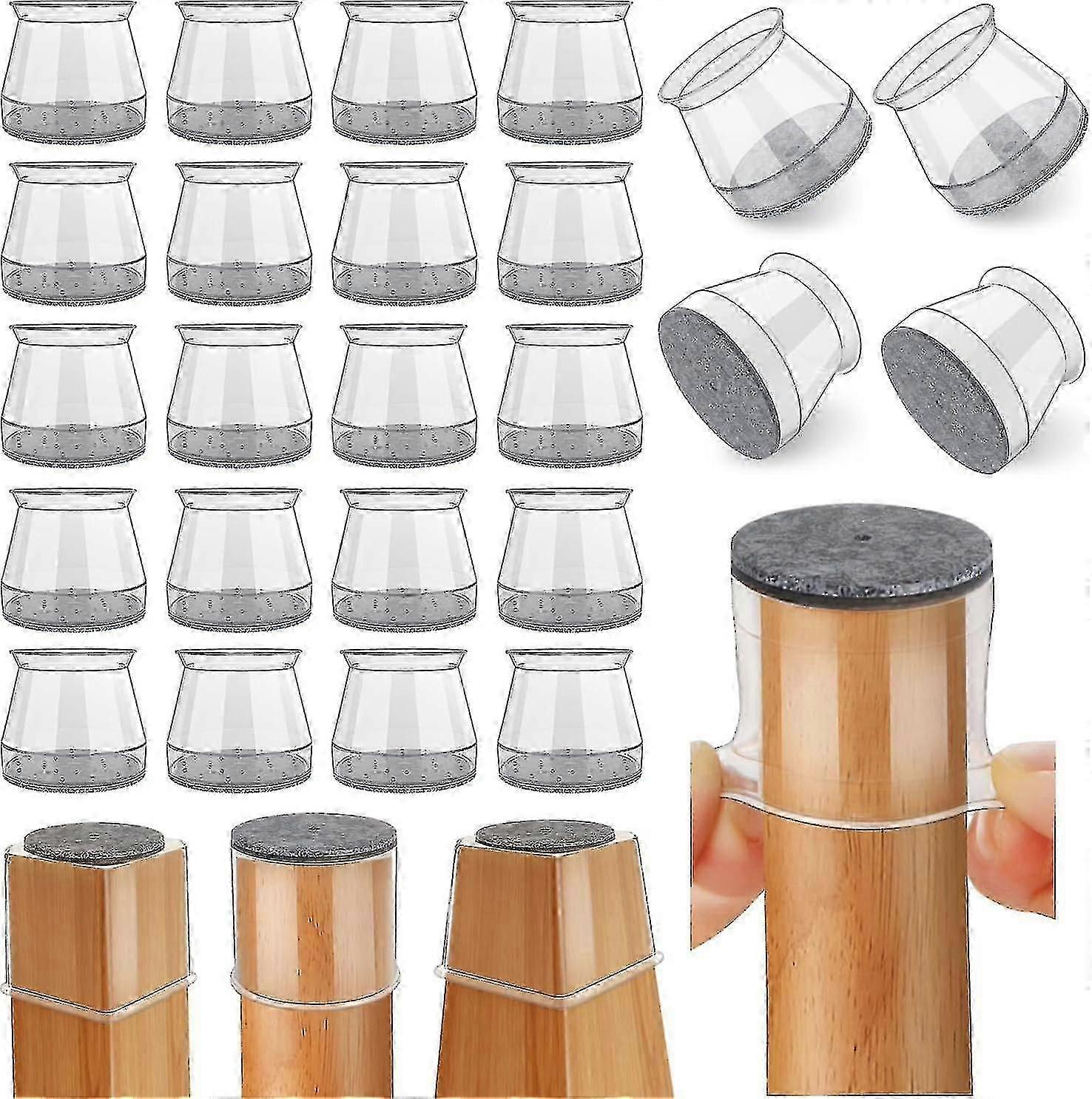 24 Pcs Chair Leg Floor Protectors, Silicone Felt Furniture Leg Pads Caps Covers For Hardwood Floors (clear-medium) - Miao