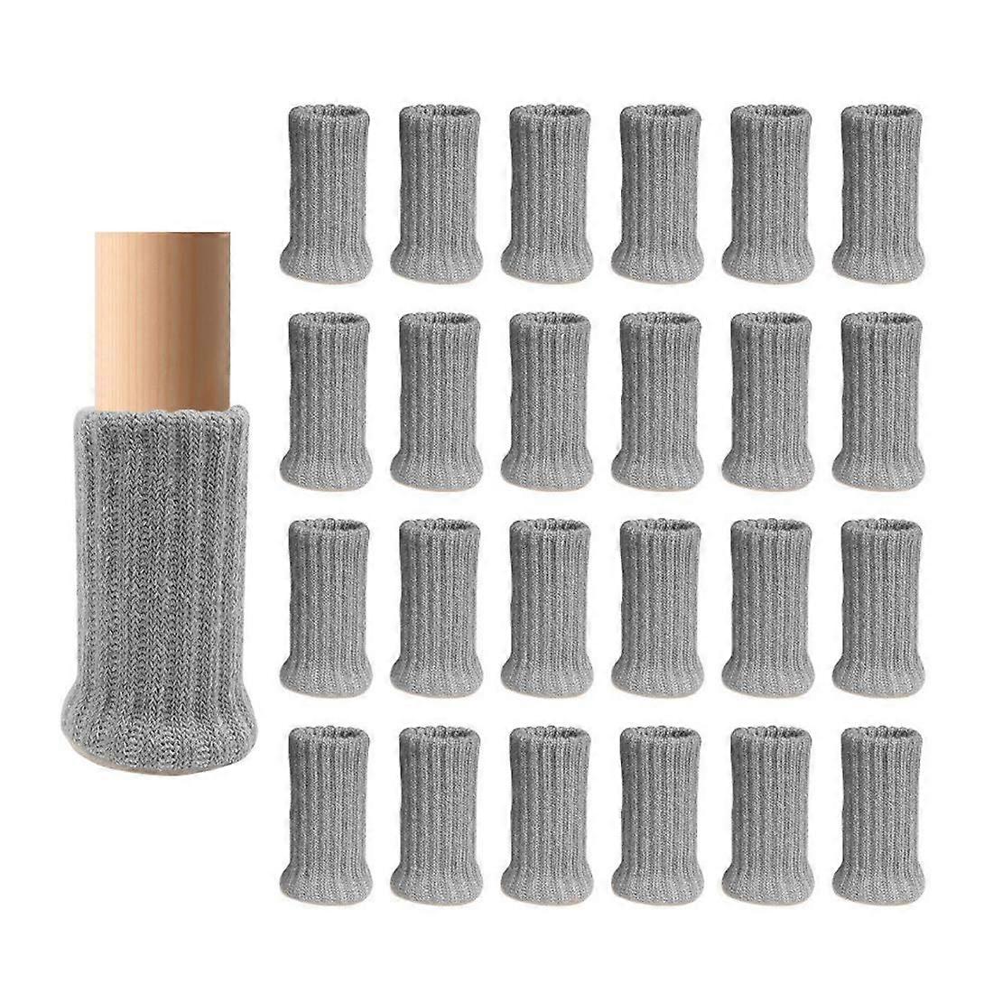 24Pcs Chair Socks, Double Knitted Thickening Chair Leg Non Slip Pad Furniture Table Floor Protector Cap (light Grey)