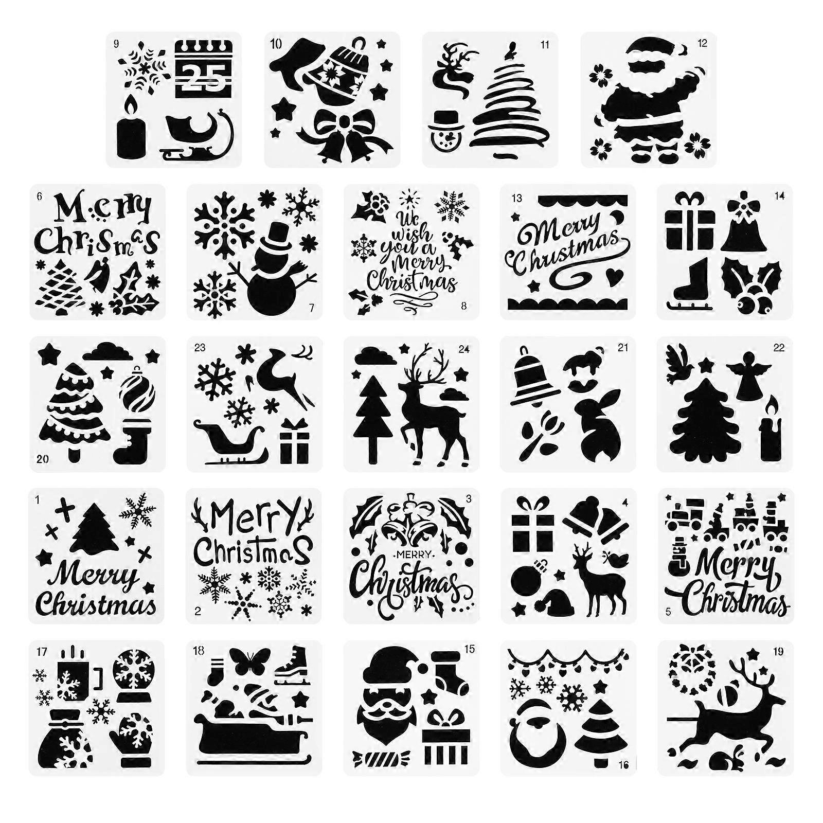 24Pcs Christmas Diy Painting Template Drawing Stencils Kids Crafts Stencil Kit White Plastic for Art Projects
