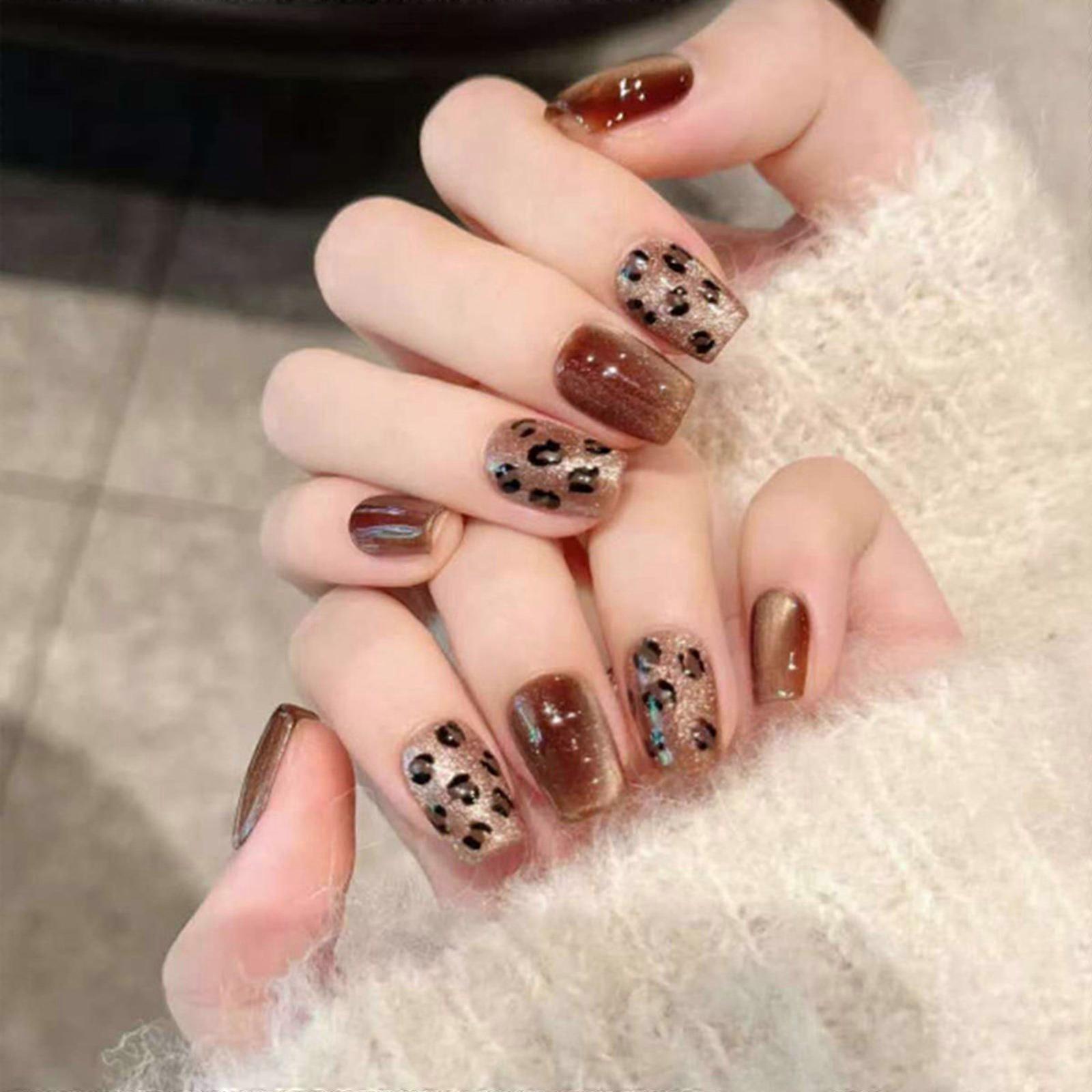 24 Pcs Short Press On Nail Cats Eye Full Cover Stick on Nail Elegant Artificial Nail Glittering False Nail for Woman