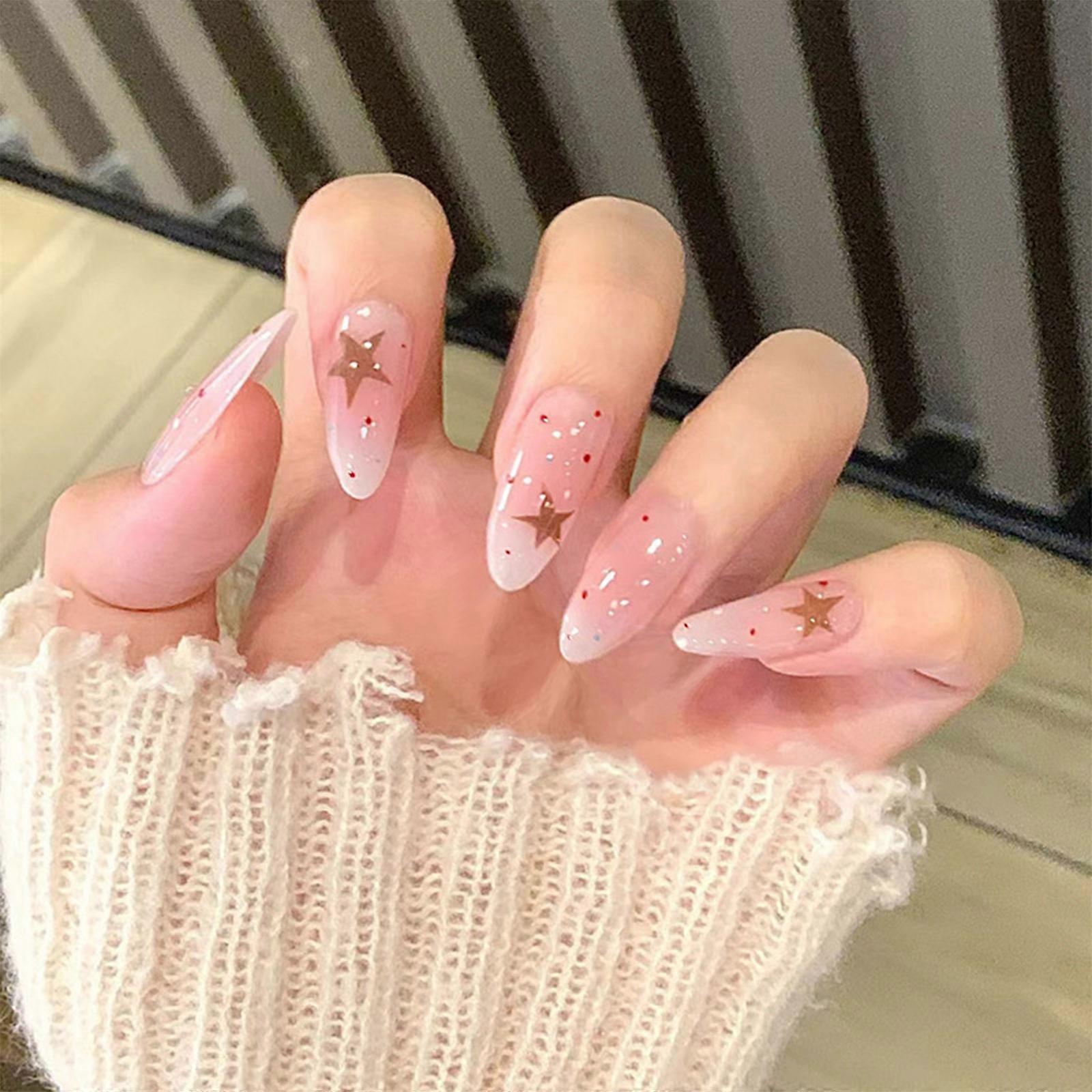 24 Pcs Sweet False Nail Star Polkas Dots Artificial Nail Full Cover Stick on Nail French Tip Press On Nail for Woman