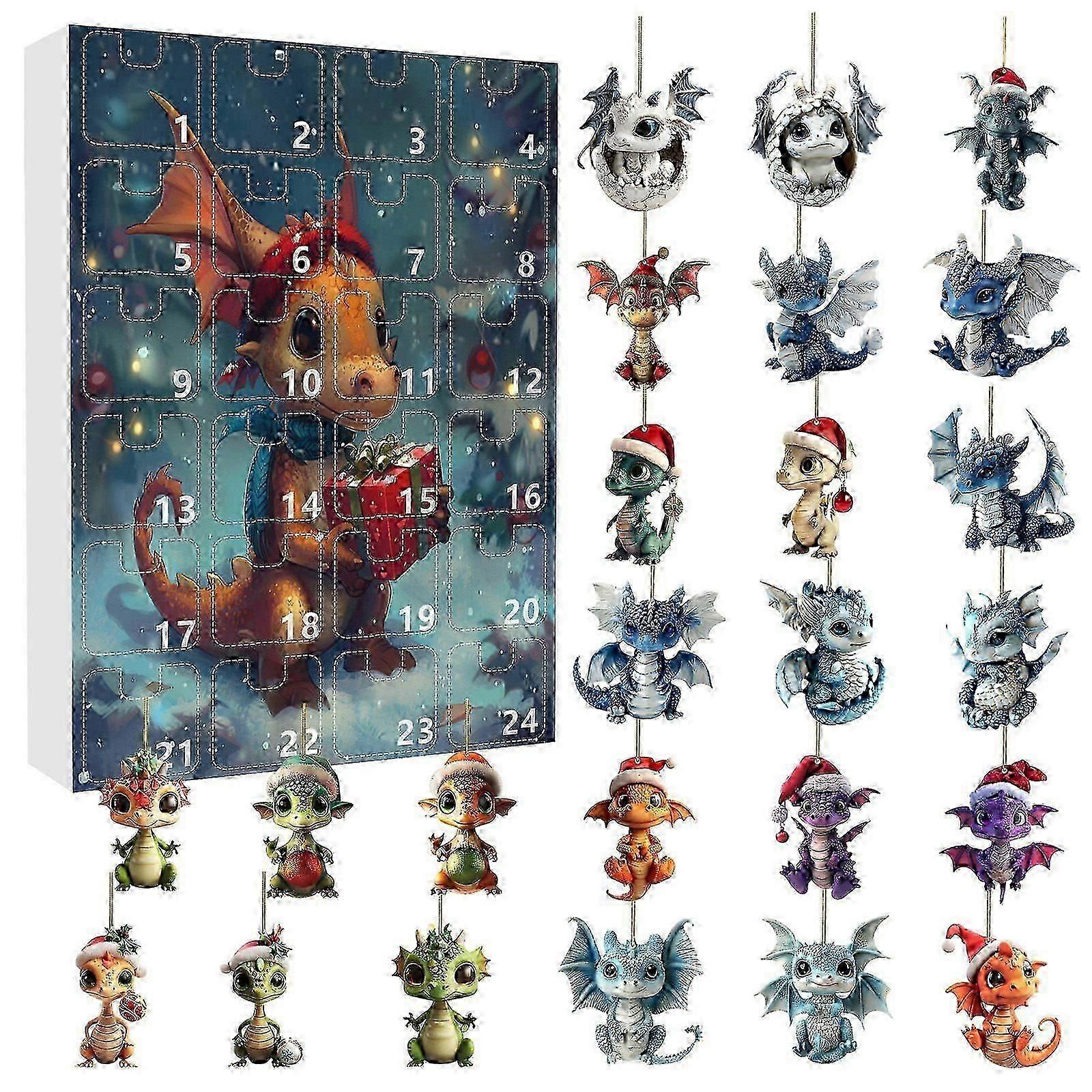 24 pcs/set Christmas Blind Box Acrylic Dragon Pendant Christmas Advent Calendar Blind Box Christmas Tree Pendant