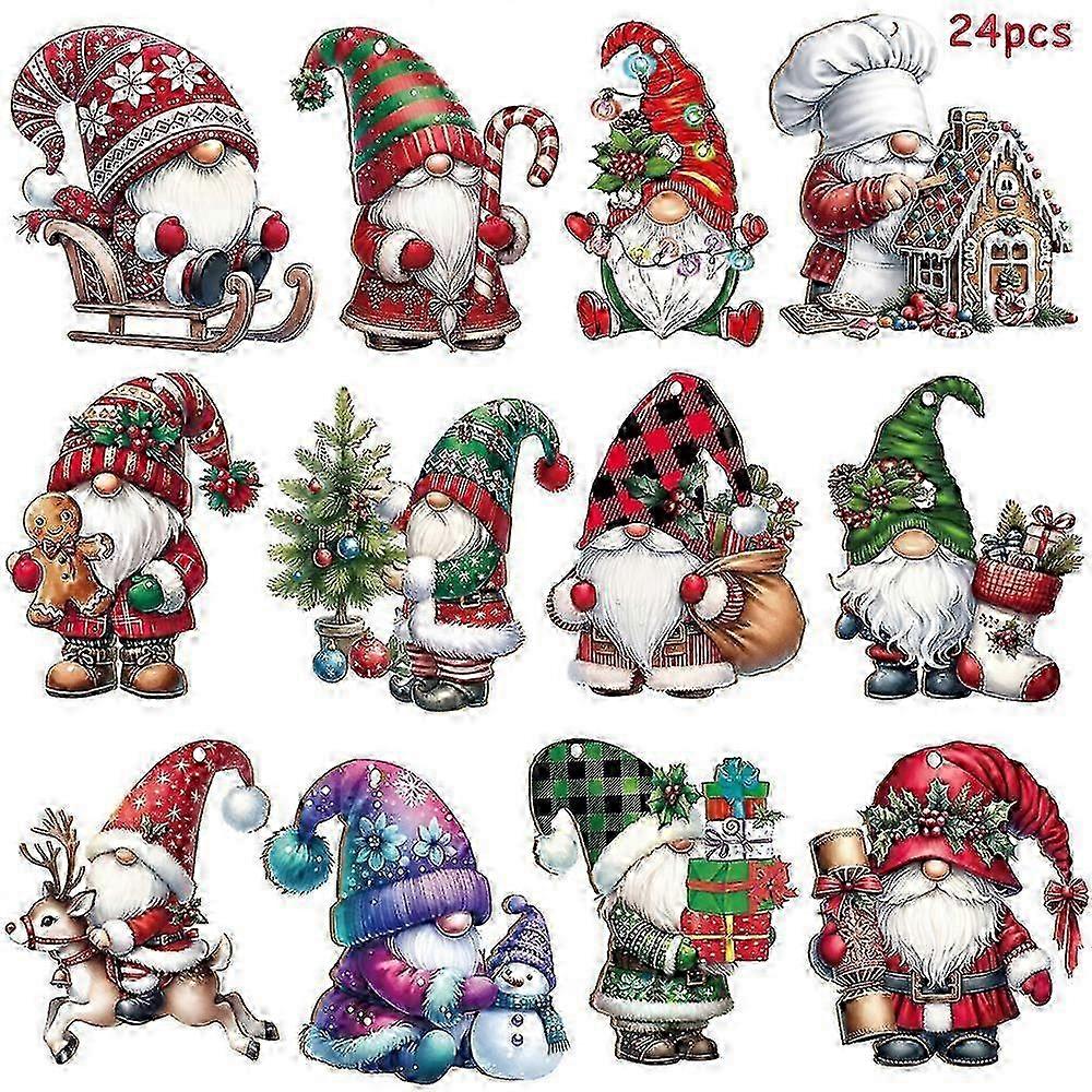 24 Pcs/set Gnome Xmas Wooden Hanging Ornaments,Dwarf Christmas Tree Decoration