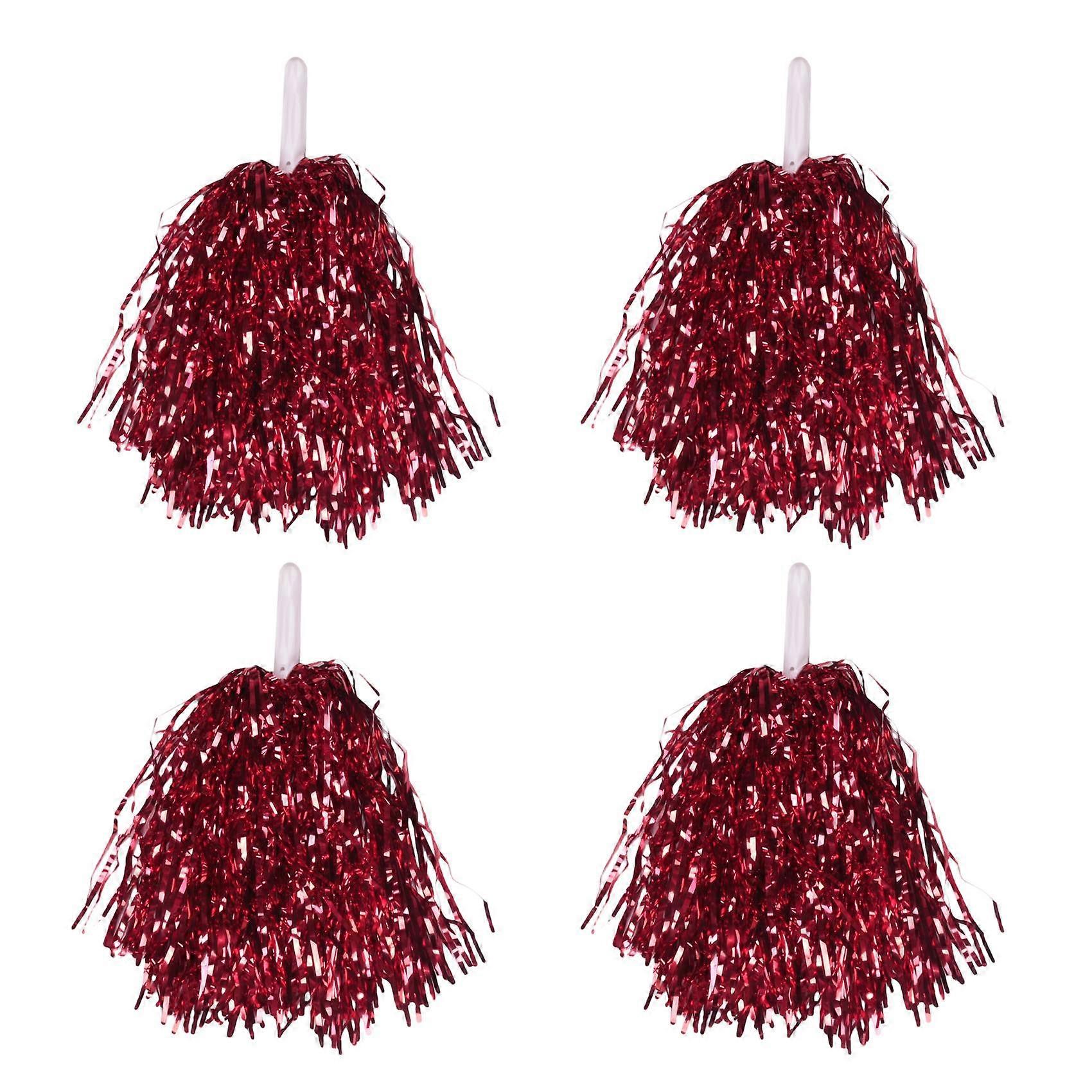 24Pcs Cheerleading Pom Poms Metallic Foil Cheer Pom Poms with Plastic Handle for Adults Kids Cheerleaders Party Red