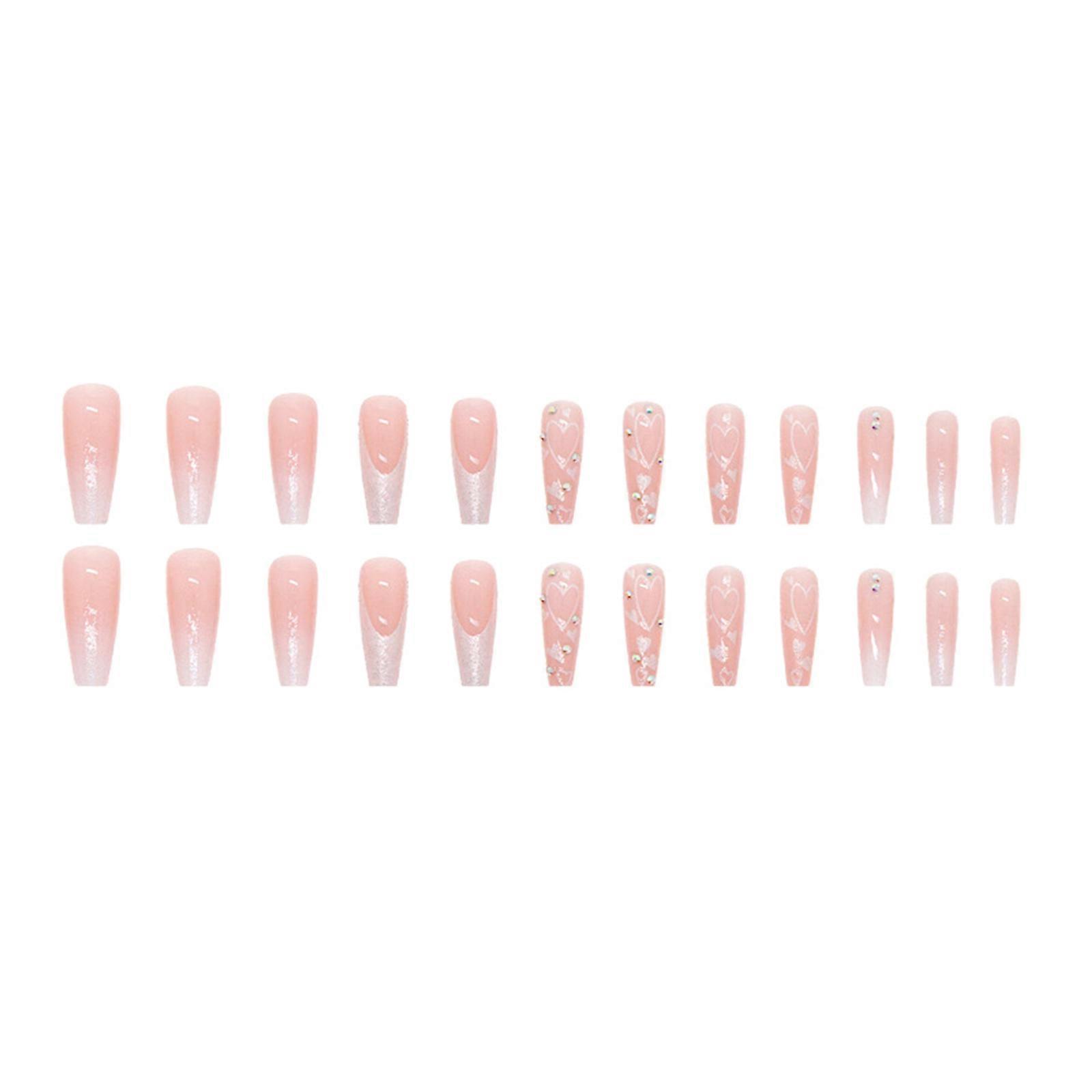 24Pcs Nude Pink Press on Nails Long Fake Nails Full Cover Stick on Nails French False Nails Acrylic Nails for Women Girl