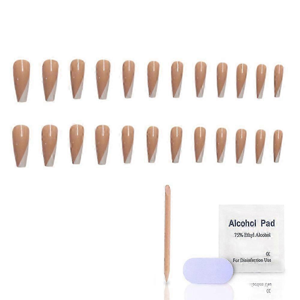 24 Pcs Press On Nails Long Fake Nails Acrylic Ballet French White Illuminate Butterfly Adhesive Tape On Nails Design Nail