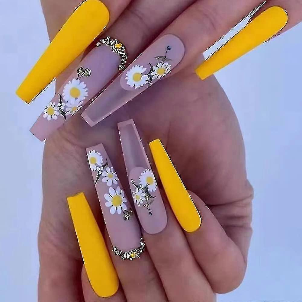 24 Pcs Fake Nails Long Coffin Nude Full Cover Press On Nails Acrylic Glossy Rhinestone