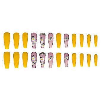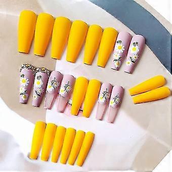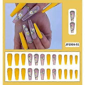 24 Pcs Fake Nails Long Coffin Nude Full Cover Press On Nails Acrylic Glossy Rhinestone