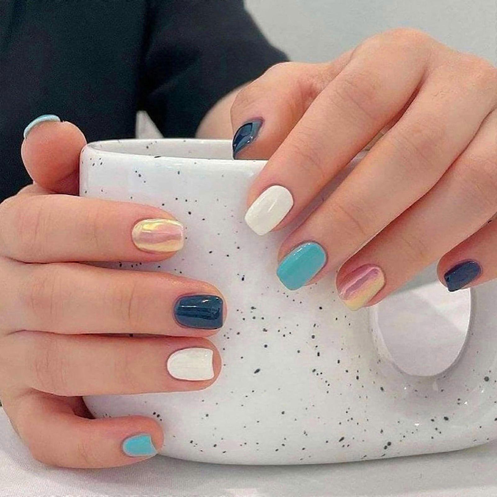 24 Pcs Glossy Full Cover False Nail Elegant Stick on Nail Cats Eye Press On Nail Reusable Artificial Acrylic Nail