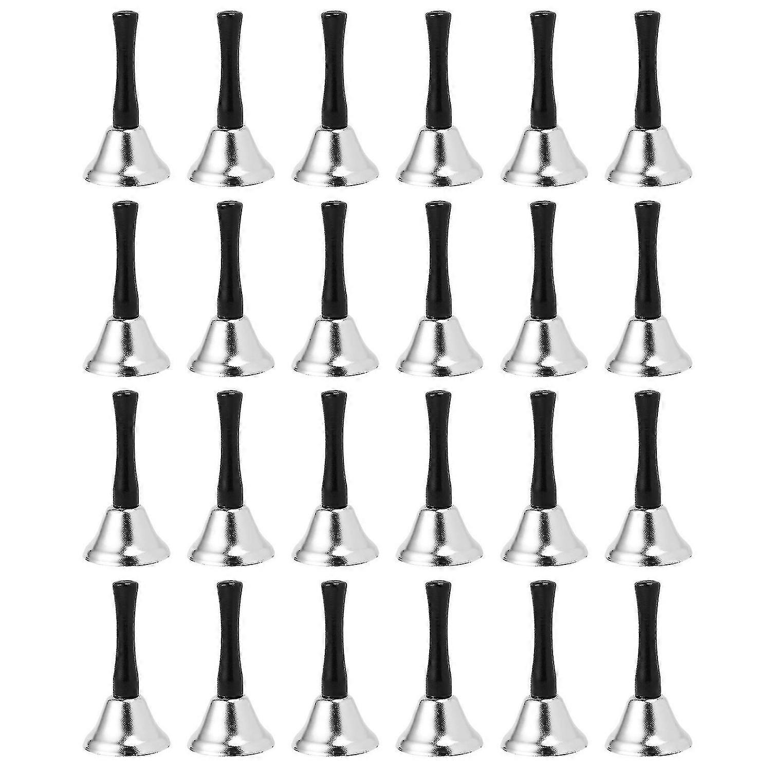 24 Pieces Hand Silver Steel Service Handbells Black Wooden Handle Diatonic Metal Musical Percussion