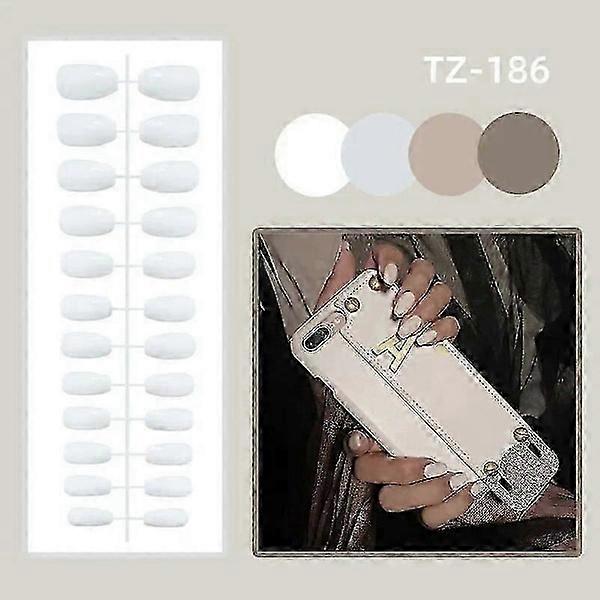 24 pcs Small Almond Oval Decorated Cloud Milk Portable Fake Nails Short Press-On Nails Coffin Detachable French