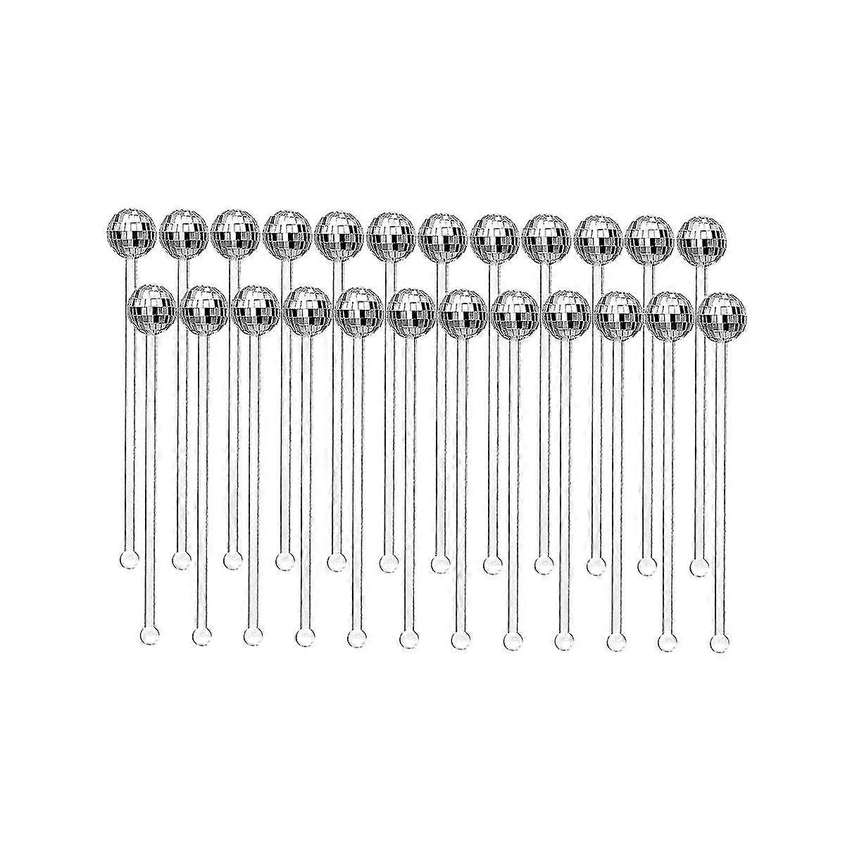 24 Pcs Disco Balls Cocktail Stirrers Plastic Round Top Swizzle Sticks Cake Mirror Ball Coffee Beverage Stirrers