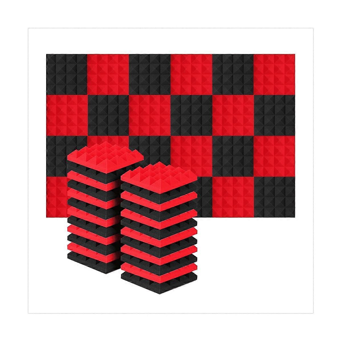 24Pcs 25X25X5Cm Studio Acoustic Soundproof Foam Pyramid Noise Insulation Sound Absorption Treatment Panels Black+Red