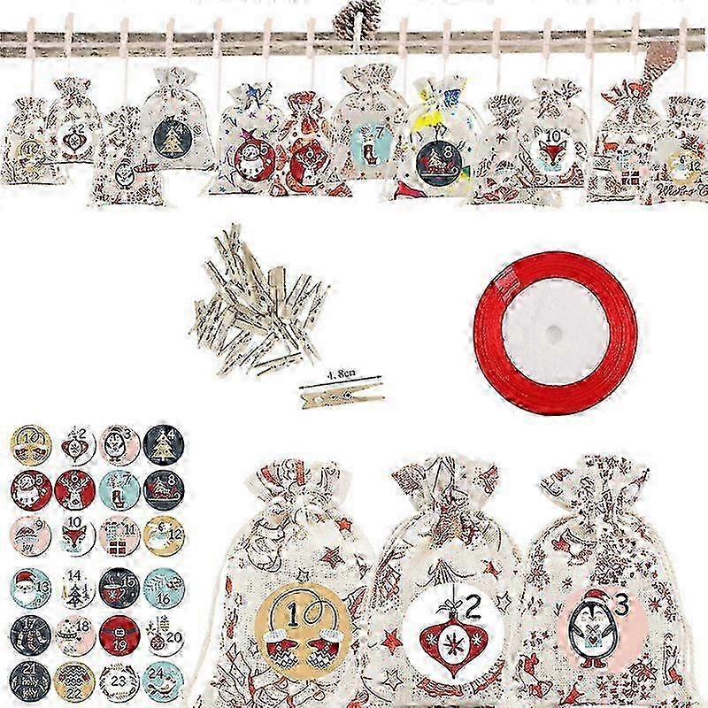 24 Days DIY Advent Calendar Bags - Cotton Linen Drawstring Bags for Christmas Tree Decor and Small Gifts