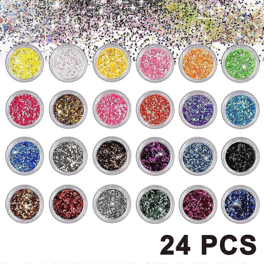 24 Color Nail Powder Pigment, Iridescent Glitter Luminous Pearlescent High Gloss Halo Powder, 3D DIY Nail Art