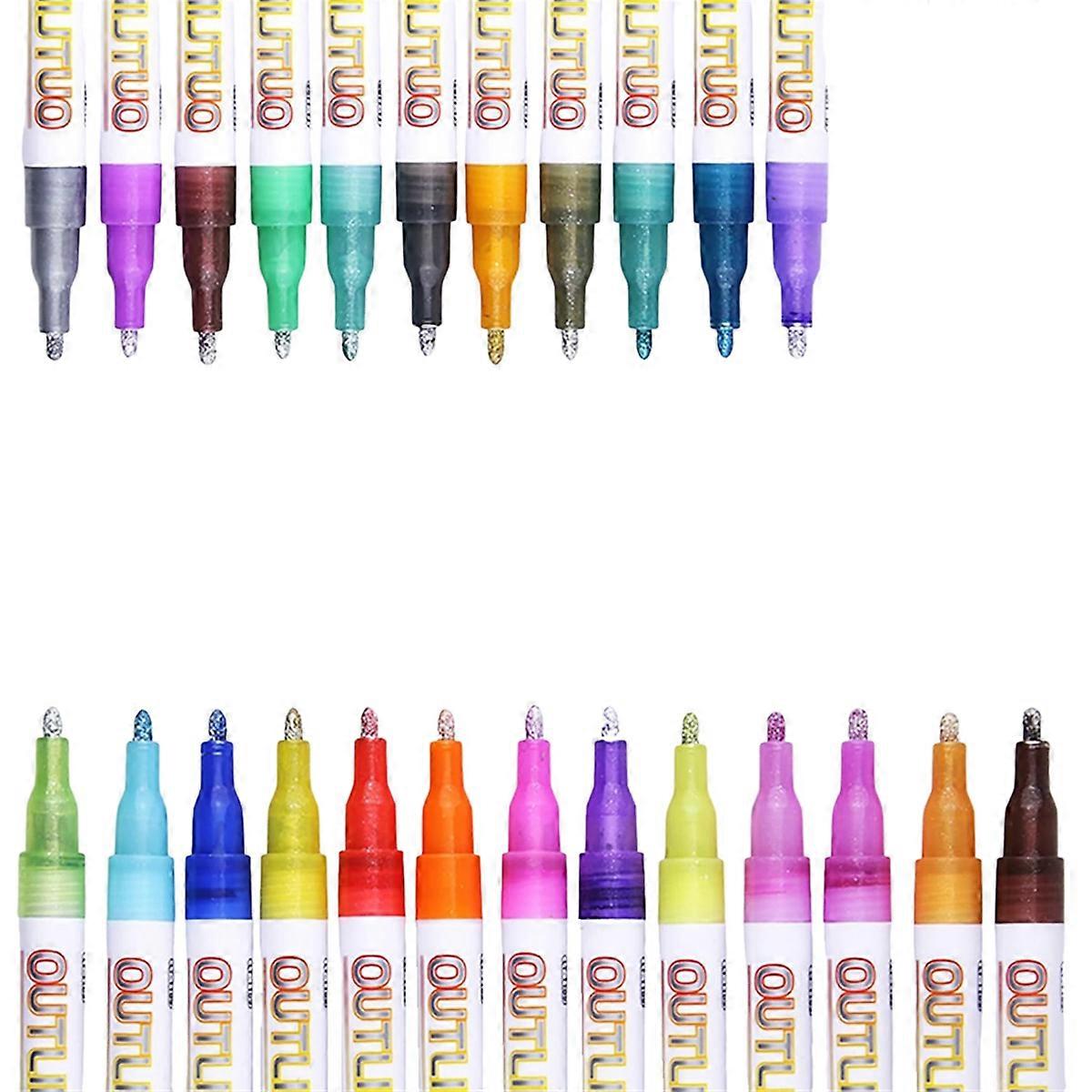 24 Colors Metallic Outline Glitter Pens Set for Kids and Adults