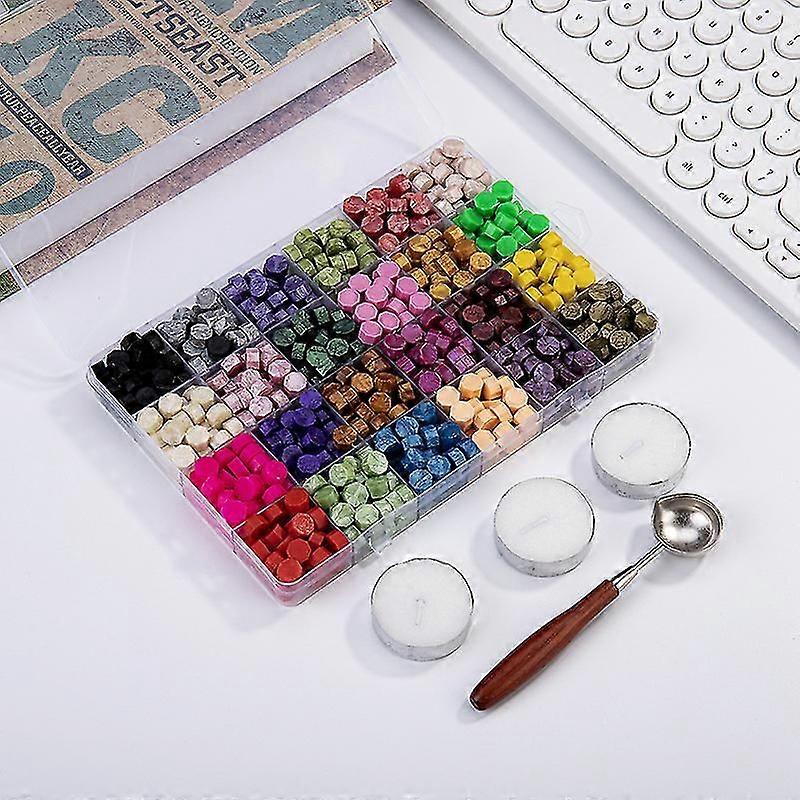 24 Colors Wax Seal Kit, 600pcs Sealing Wax Beads, Sealing Wax With Spoon And Candle, Wax Seal Stamp Kit