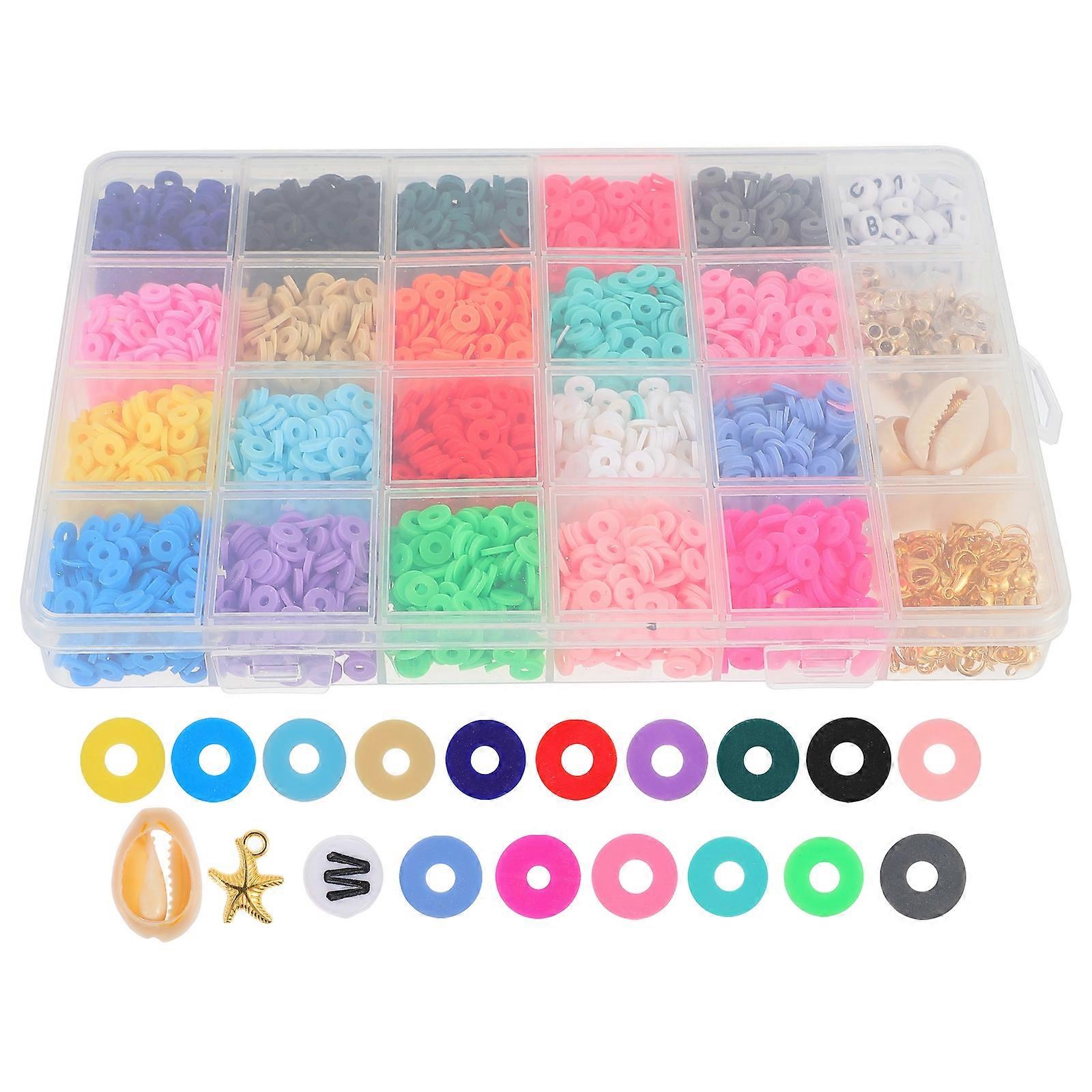24 -Grid Jewelry Girls Necklace Spacer Beads Clay Loose Beads Flat Ceramic Beads Polymer Clay Spacer Beads