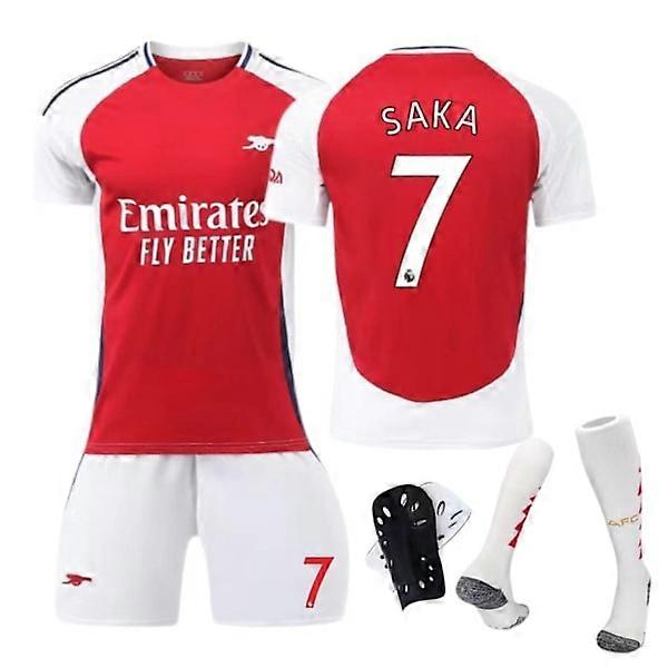 24-25 Arsenal Home Jersey 7 Saka 8 Odegaard Kids & Adult Set - Football jersey - No. 7 with Socks + Protective gear 28(150-160cm)