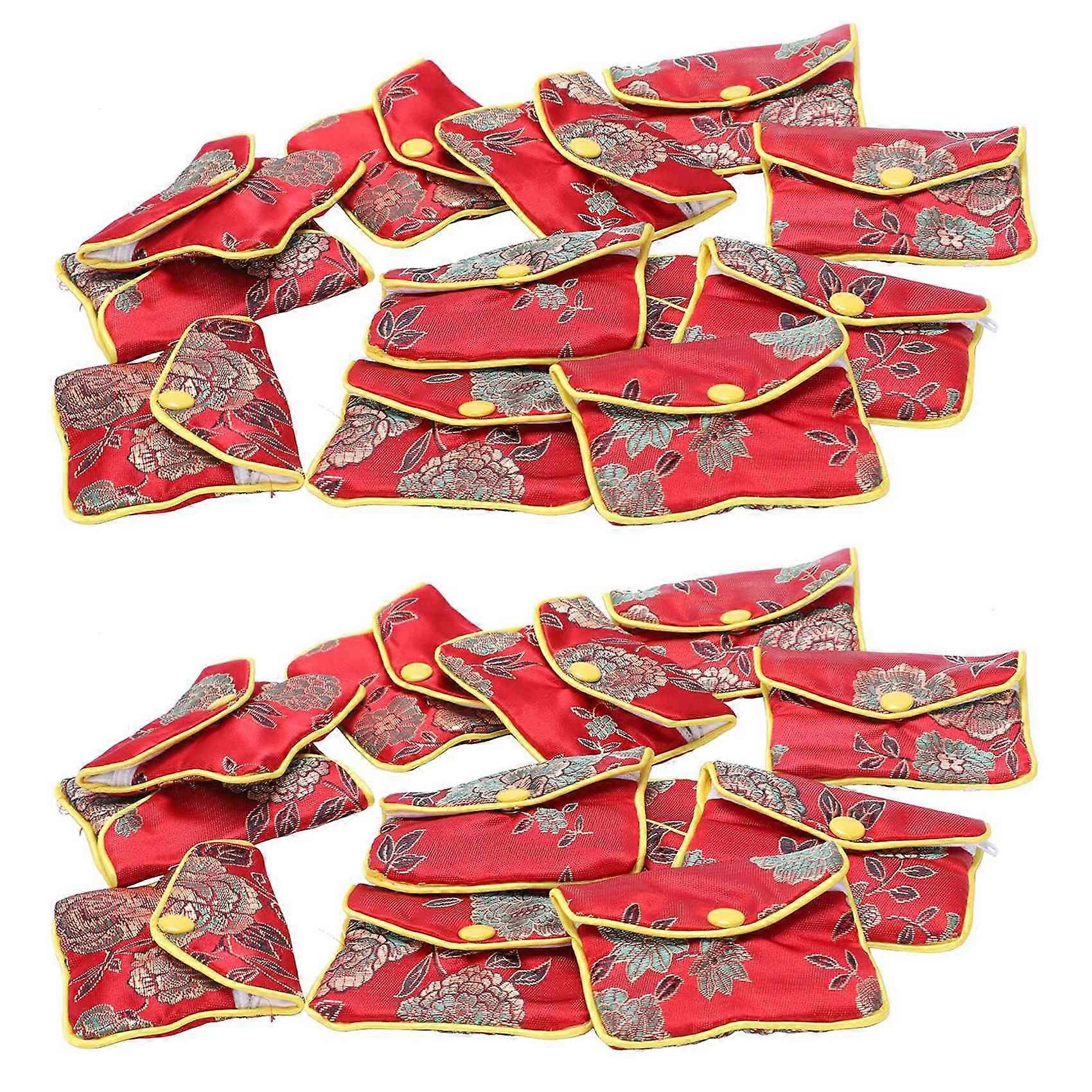 24 in 1 Small Jewelry Box Jewelry Red Jewelry Bag Embroidered Silk Cloth Bag Coin Purse