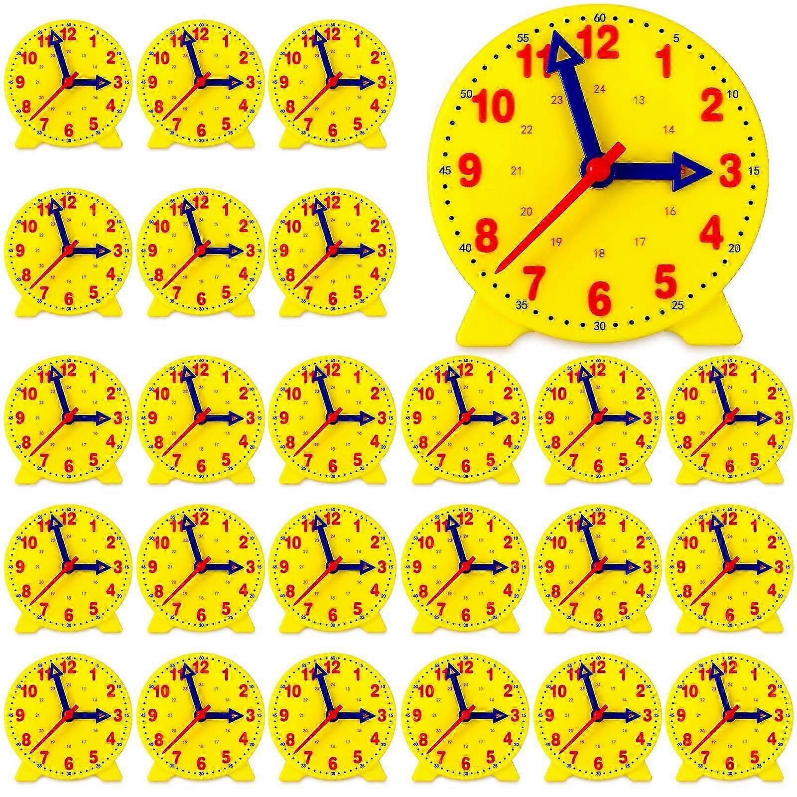 24 Pcs Teaching Clock Kit for Kids, 4 Inch Mini Geared Clocks in Yellow for Learning Time and Math Skills