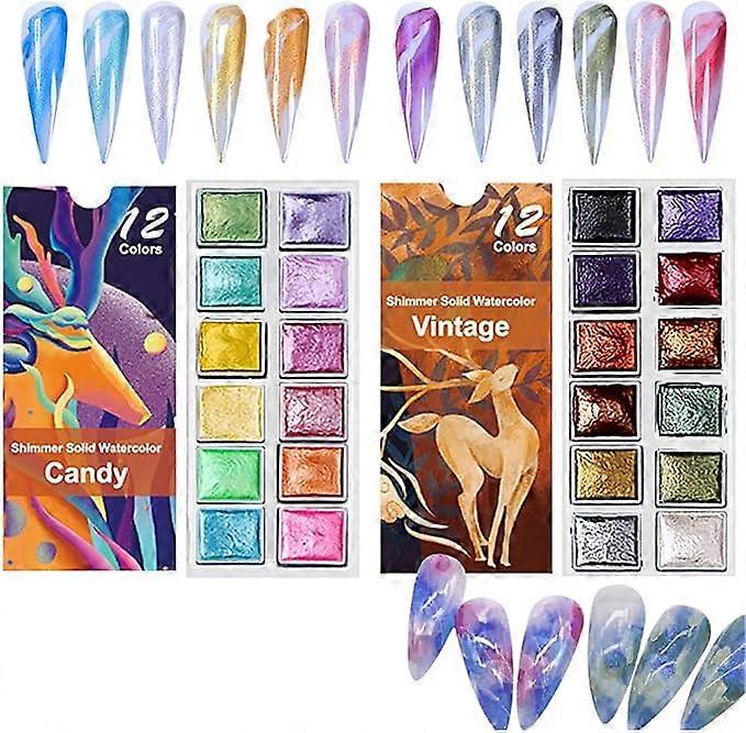 24 Colors Nail Pigment Powder Palette, Watercolor Nail Paint Powder Nail Art Palette Gel Paint for Nails Art Pigmentos, Nail Art Paint for Glitter Nai