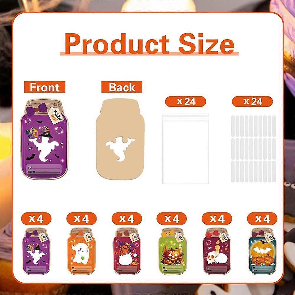 24/48-Pack Halloween Mason Jar Cards Diy Trick-Or-Treat Goodie Bags For Kids