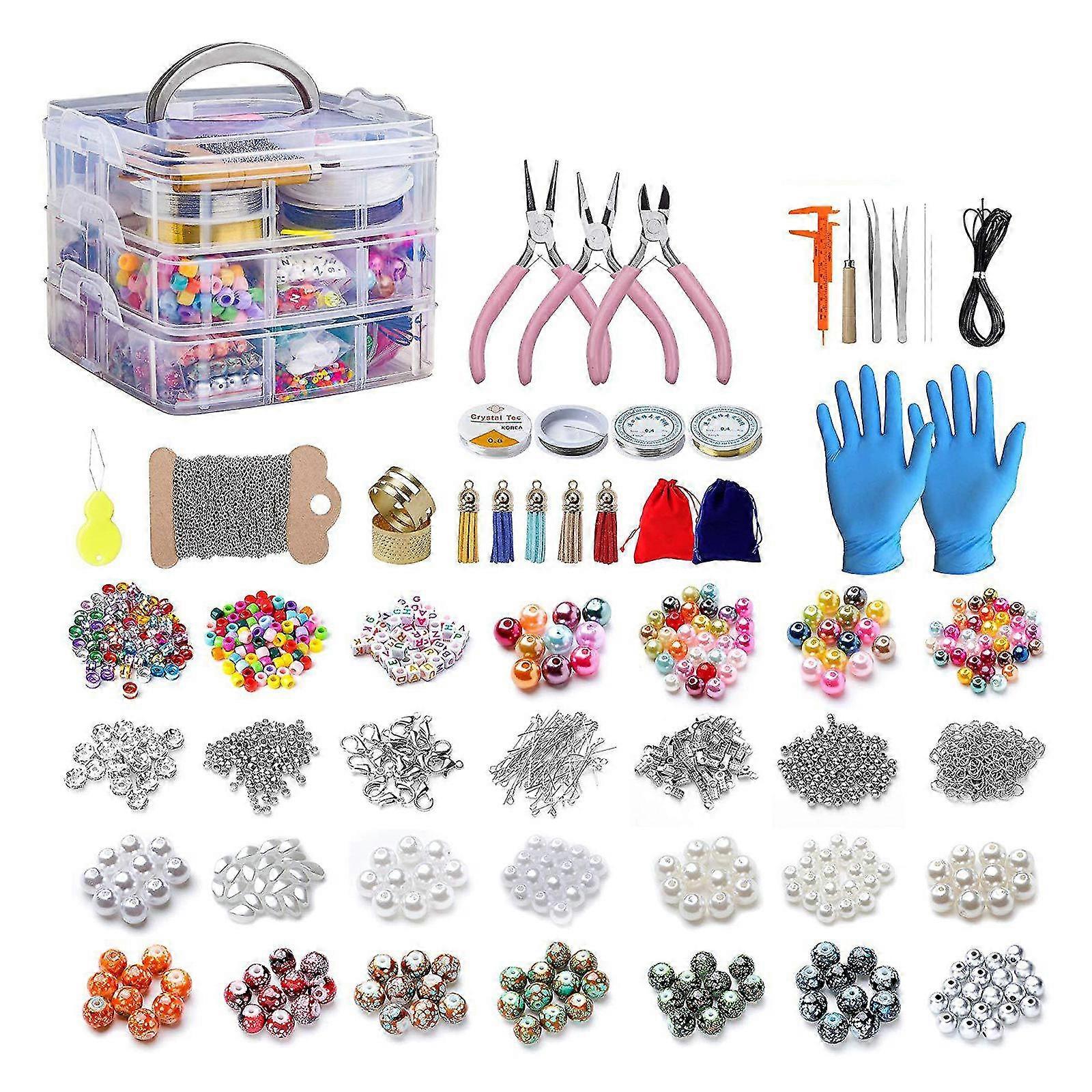 2456pcs Jewelry Making Supplies Kit With Assorted Beads Charms Findings Wire Cord Pliers For Necklace Bracelet Earrings Diy Accessories