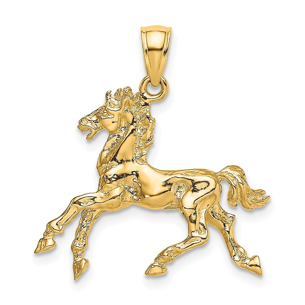 24.6mm 10k Solid Yellow Gold 3 d Horse Trotting Charm Pendant Necklace for Women - 3.0 Grams
