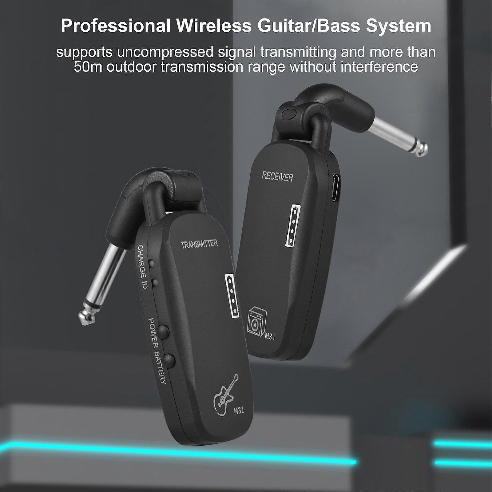 2.4G Wireless System Professional Wireless Guitar Bass Transmitter Receiver System Rechargeable Portable Audio TX & RX for Electric Guitar Bass