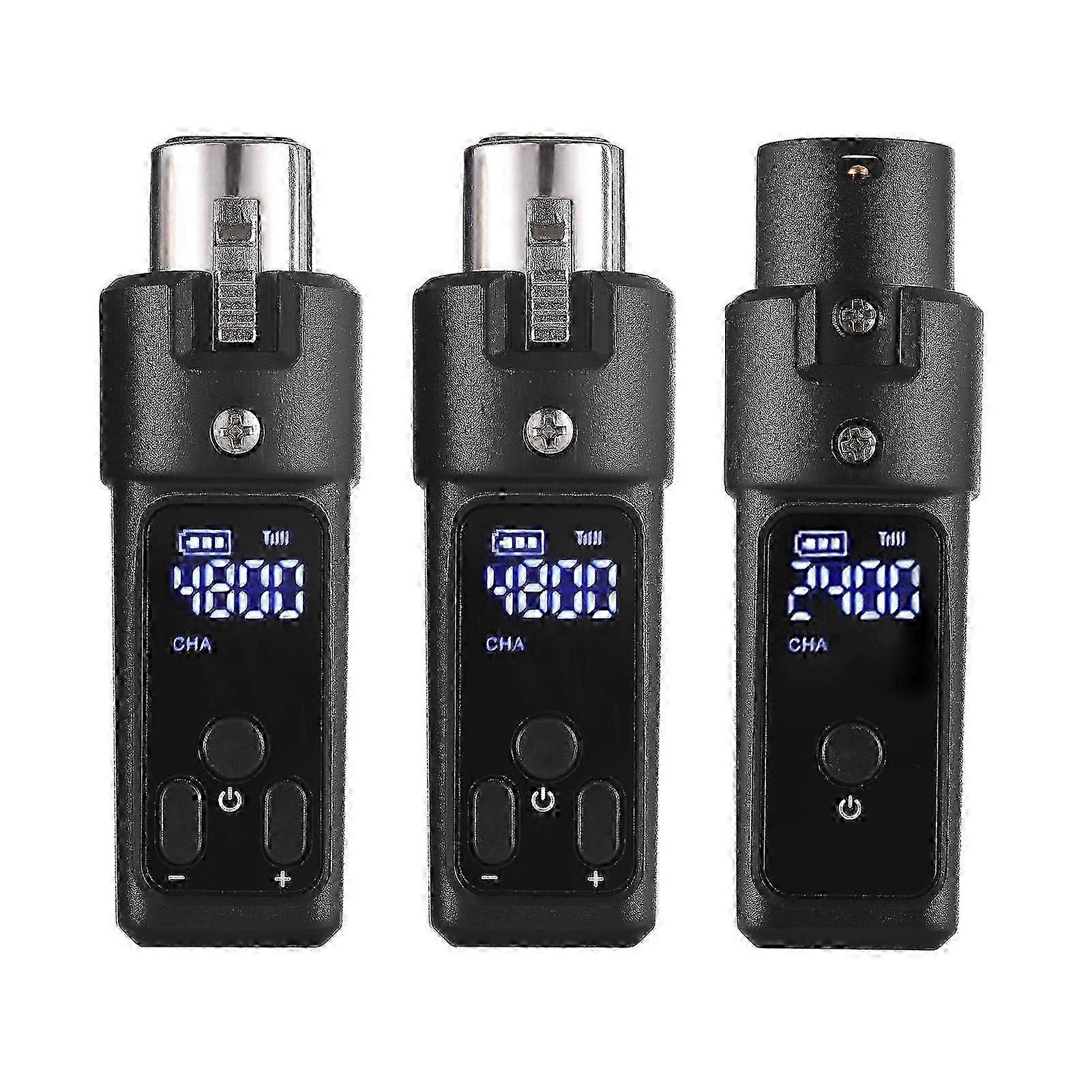 2.4G Microphone Wireless Xlr Transmitter and Receiver Rechargeable Wireless Mic System for 48V Condenser Microphones Audio Mixer Electric Guitar Bass Speaker Wireless Mic Transmitters Receivers Usage Time: Approx. 7-8 hours Frequency Range: 4800MHz Receiving Sensitivity:- 88dB FM Mode: 2.4G Output Power: 10mW Usage Distance: Approx. 30m or 98ft Frequency Response: 20Hz-20KHz [3dB] Dynamic Range: 110dB Attention: The transmitter is only suitable for microphones with 48V capacitors Interface: XLR Battery Capacity: 3.7V or 250mAH Product Color: Black Transmitter Size: 7.2 x 2.5 cm or 2.8 x 1 inch Transmitter Weight: 27 g or 1 oz Receiver Size: 8 x 2.5 cm or 3.1 x 1 inch Receiver Weight: 26 g or 0.9 oz