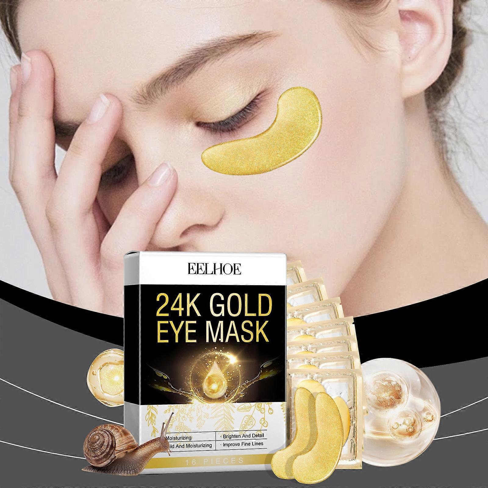 24K Gold Collagen Eye Patches Under Eye Masks for Dark Circle Eye Pad for Eye Bags Eye Gel for Puffy Eyes Hydrating Anti-Wrinkles Moisturizing-16pcs