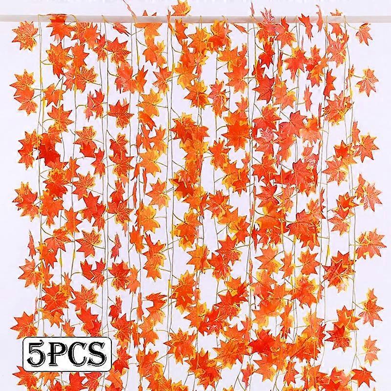 2.4m Simulation Maple Leaf Bunch Artificial Cloth Autumn Maple Leaf Rattan Garland Hanging Decor Thanksgiving Party Home Decor