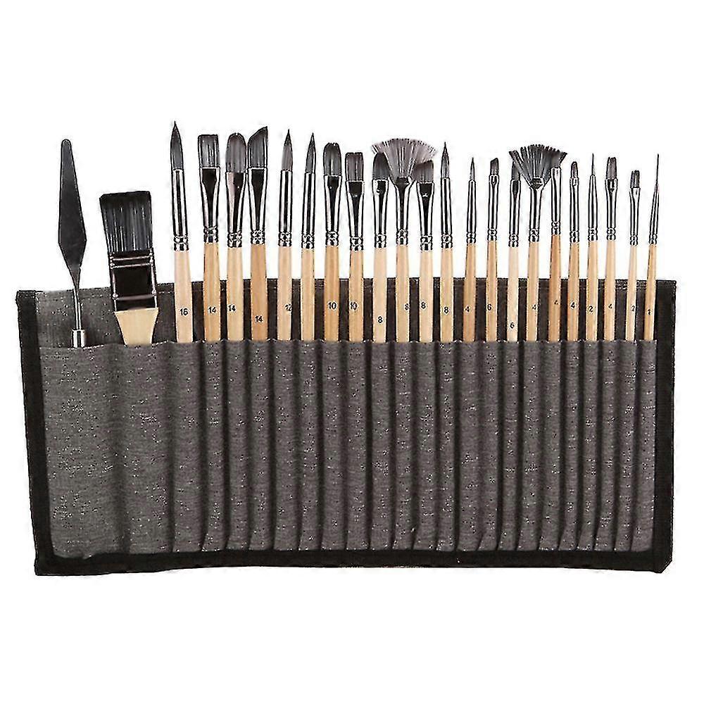 24pc Artist Brush Set with Palette Knives & Roll for Oil Acrylic Painting
