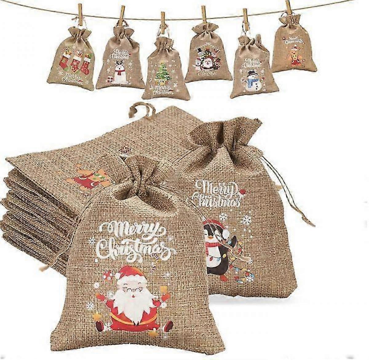 24PCS Advent Calendar Bags, Jute Bags for Advent Calendar to Fill, 10x15cm Jute Pouches with