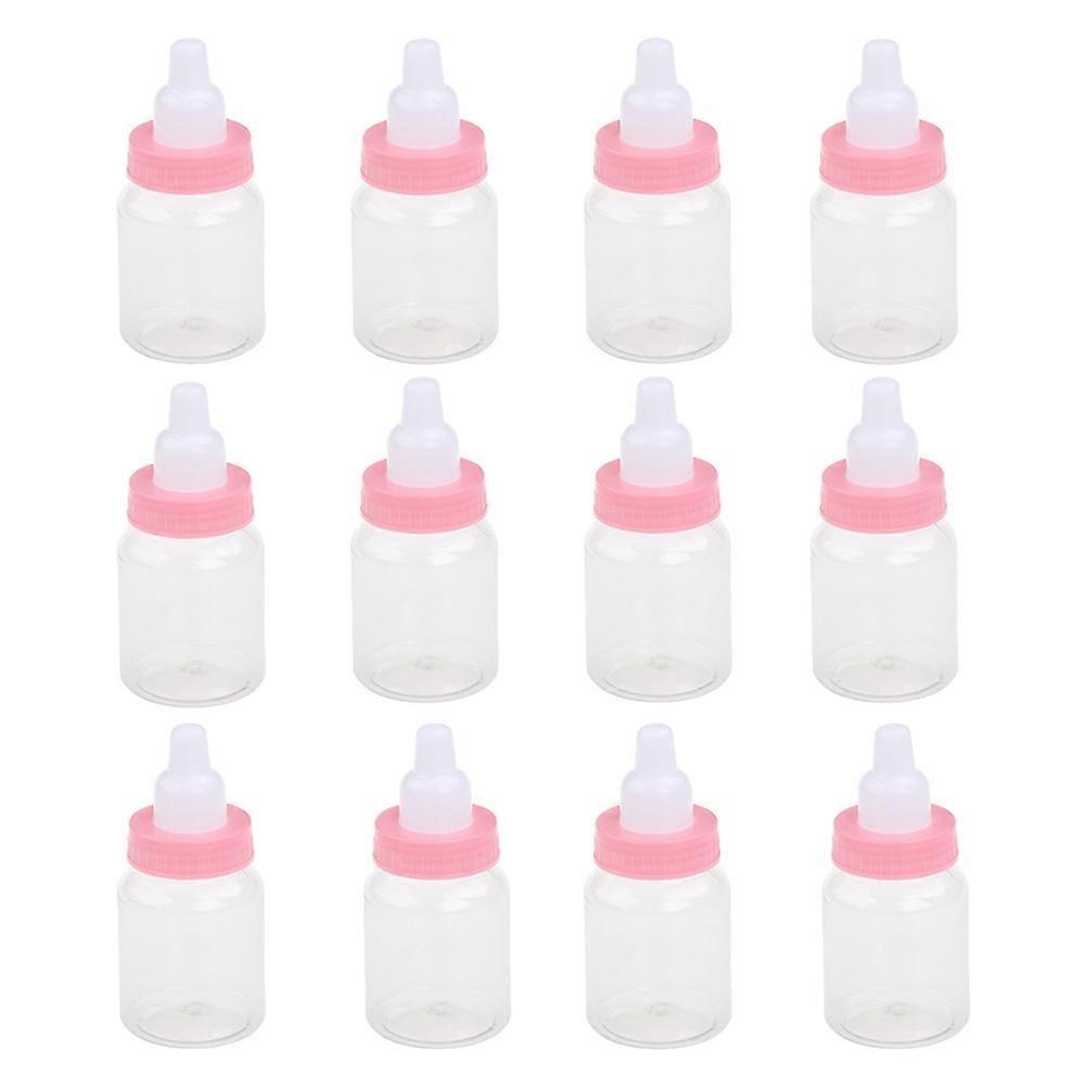 24pcs Creative Cartoon Mini Feeding Bottle Shape Decorative Candy Bottle Transparent Nursing Bottle for Baby Shower Party Favors (Pink)