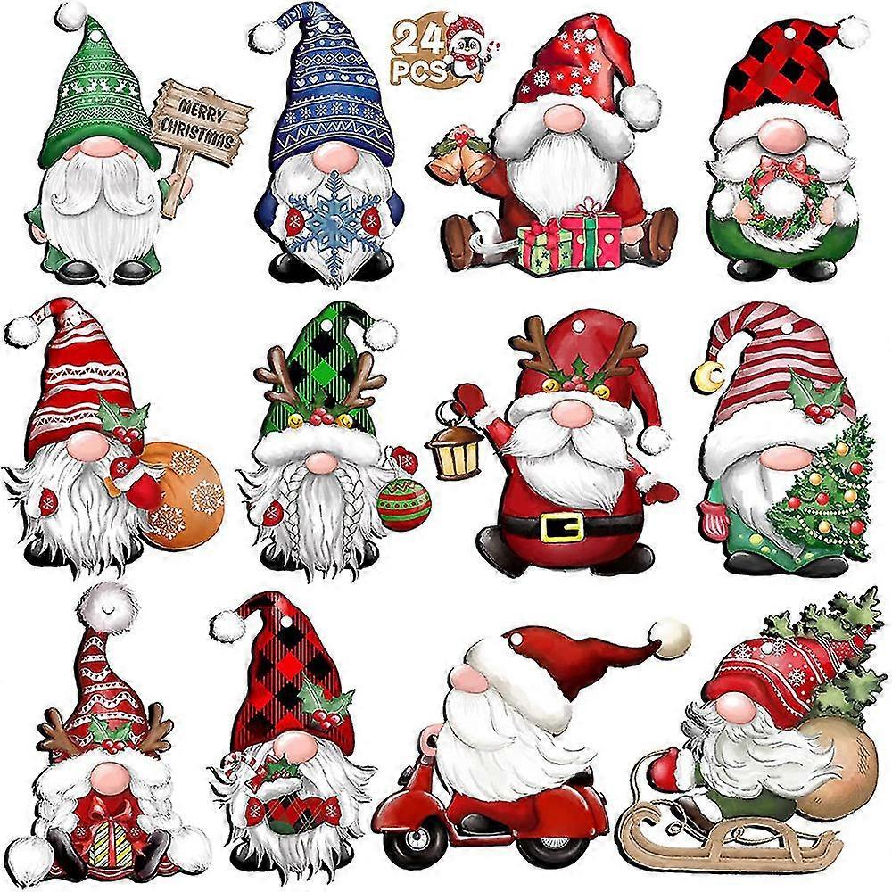 24pcs Christmas Dwarf Red Truck Wooden Hanging Ornaments For Farmhouse Xmas Tree Crafts Decoration Party Supplies Accessories Set