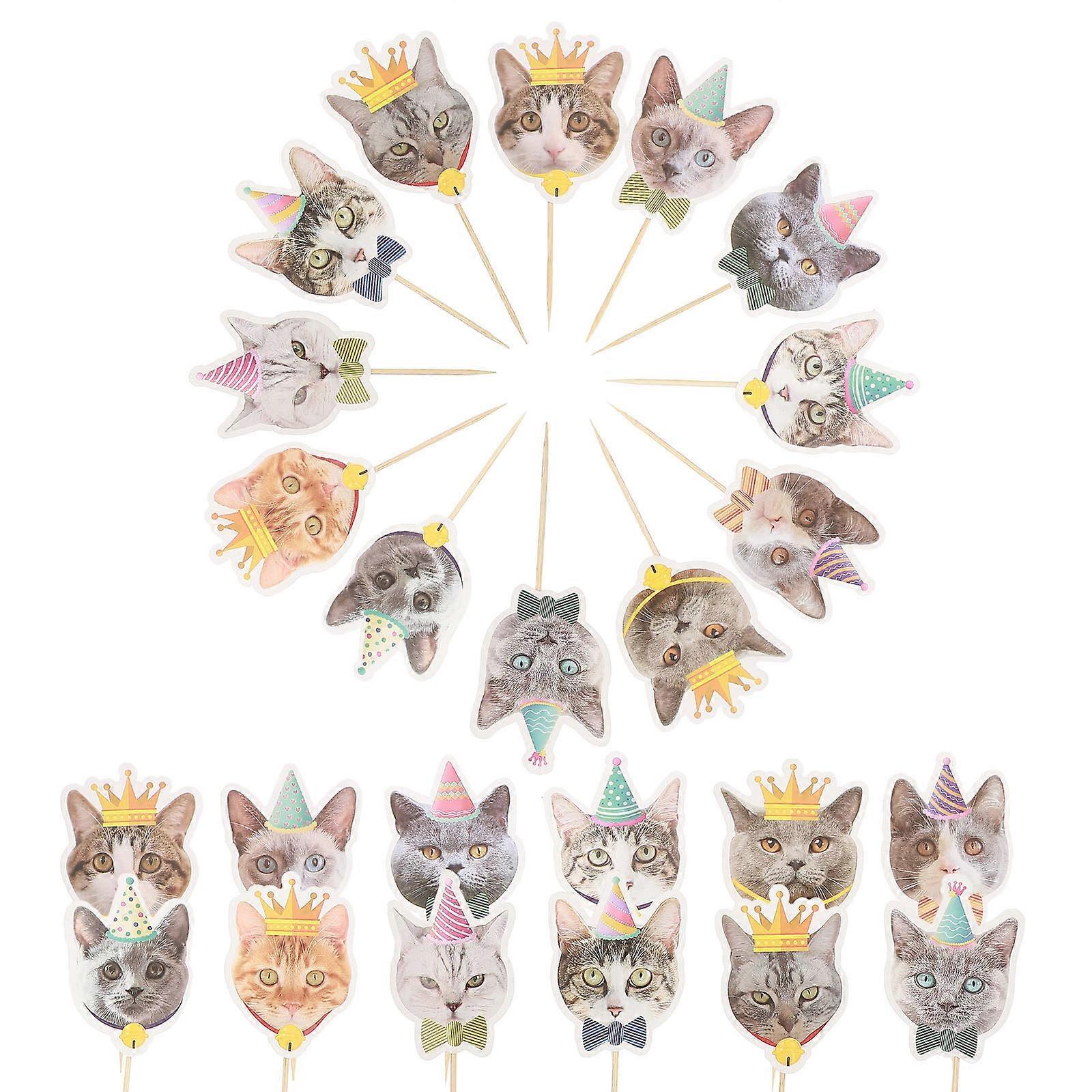 24pcs Simulation Cat Cake Toppers Cat Birthday Party Cake Picks Pet-themed Party Decorations Lifelike Paper Crafts for Birthday Evening Use