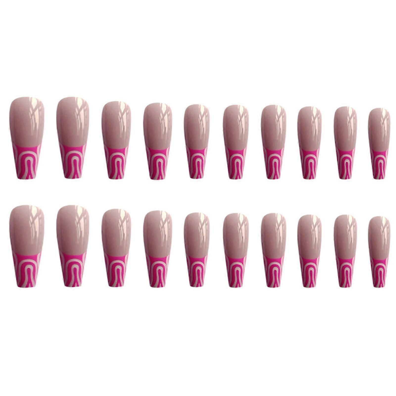24pcs Pink Waves Ballet Nails French Style Super Long Finished Nail Piece