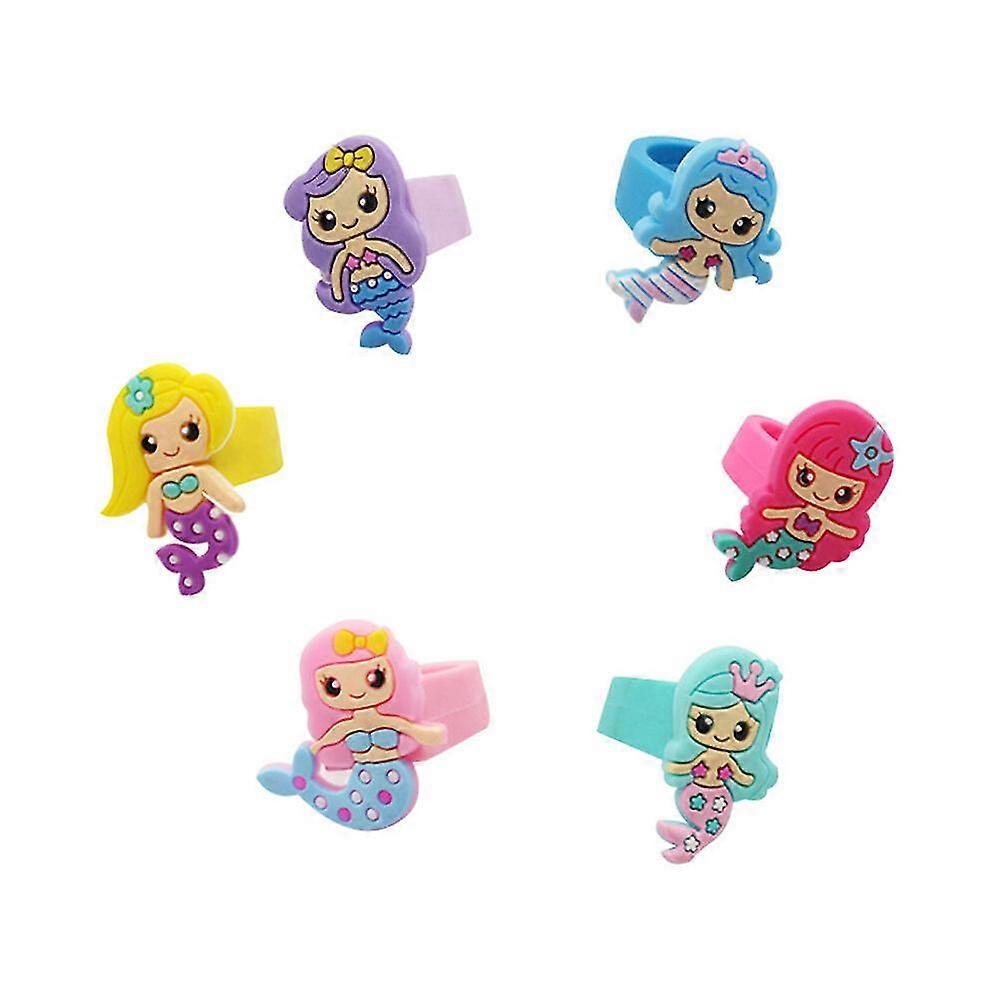 24pcs Mermaid Shape Rings PVC Children Rings Adorable Decorative Jewelry Birthday Party Favors Gifts for Kids Random Assorted Color