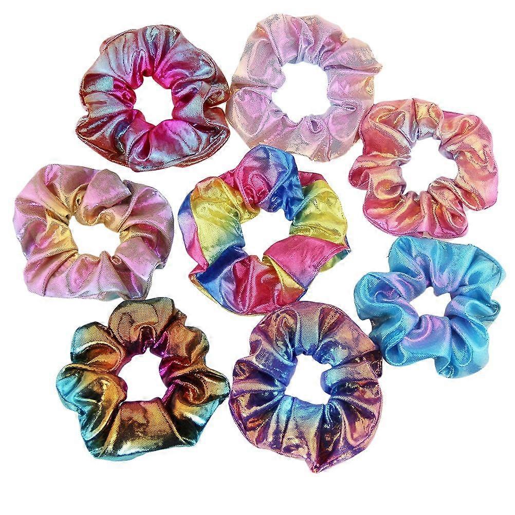 24PCS Metallic Rainbow Hair Ties for Women Gilded Two Color Stretch Hair Bands for Blue, Brown, Yellow, Green, Rose Red Ponytail Holders