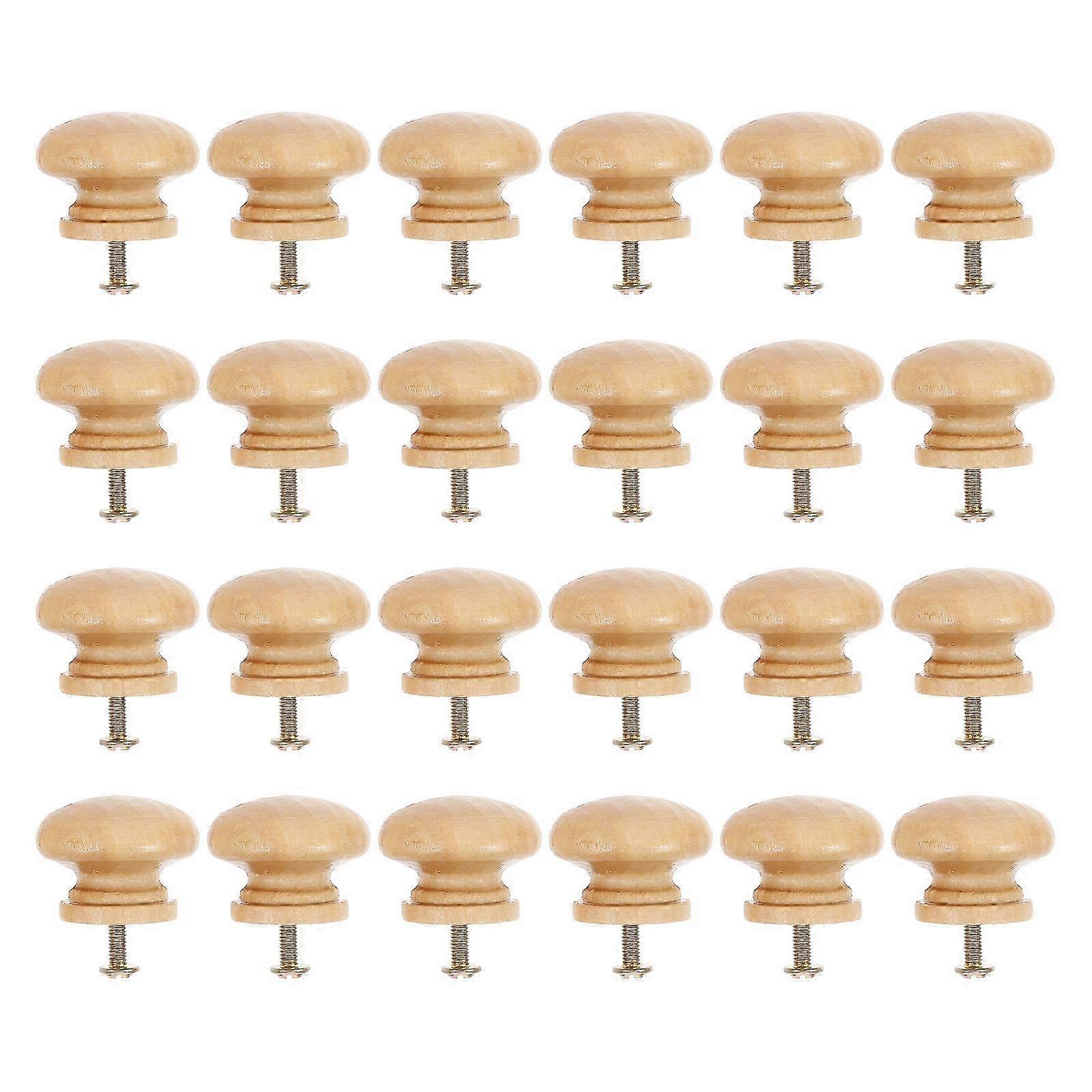24pcs Round Wood Cabinet Knobs 3X3CM Natural Brown Door Pulls