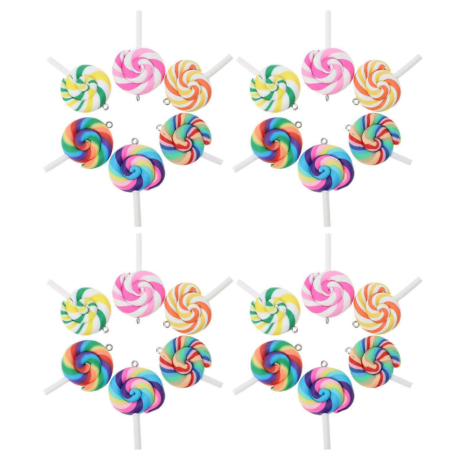 24PCS Rainbow Lollipop Clay Pendants Lightweight Candy Charms for DIY Jewelry, Crafts, Necklaces, Bracelets, Keychains, and Decorative Accessories